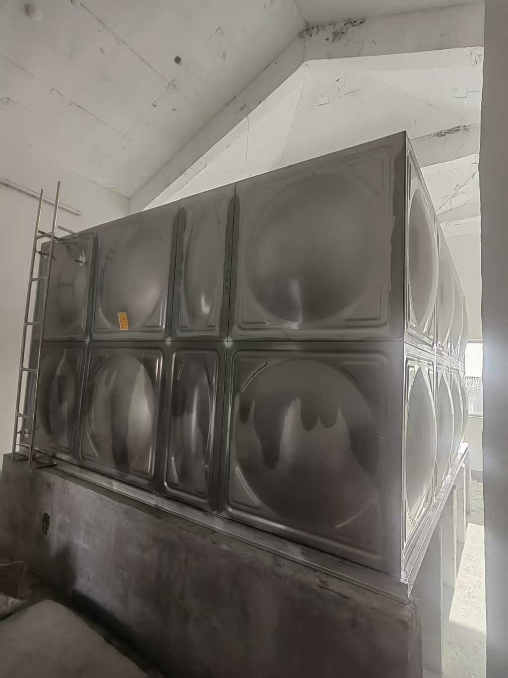 不銹鋼水箱設(shè)置會(huì)將水滴上的露珠集中在水箱上,然后流到排水的地方,這樣可以防止槽鋼濕潤(rùn)且不生銹。