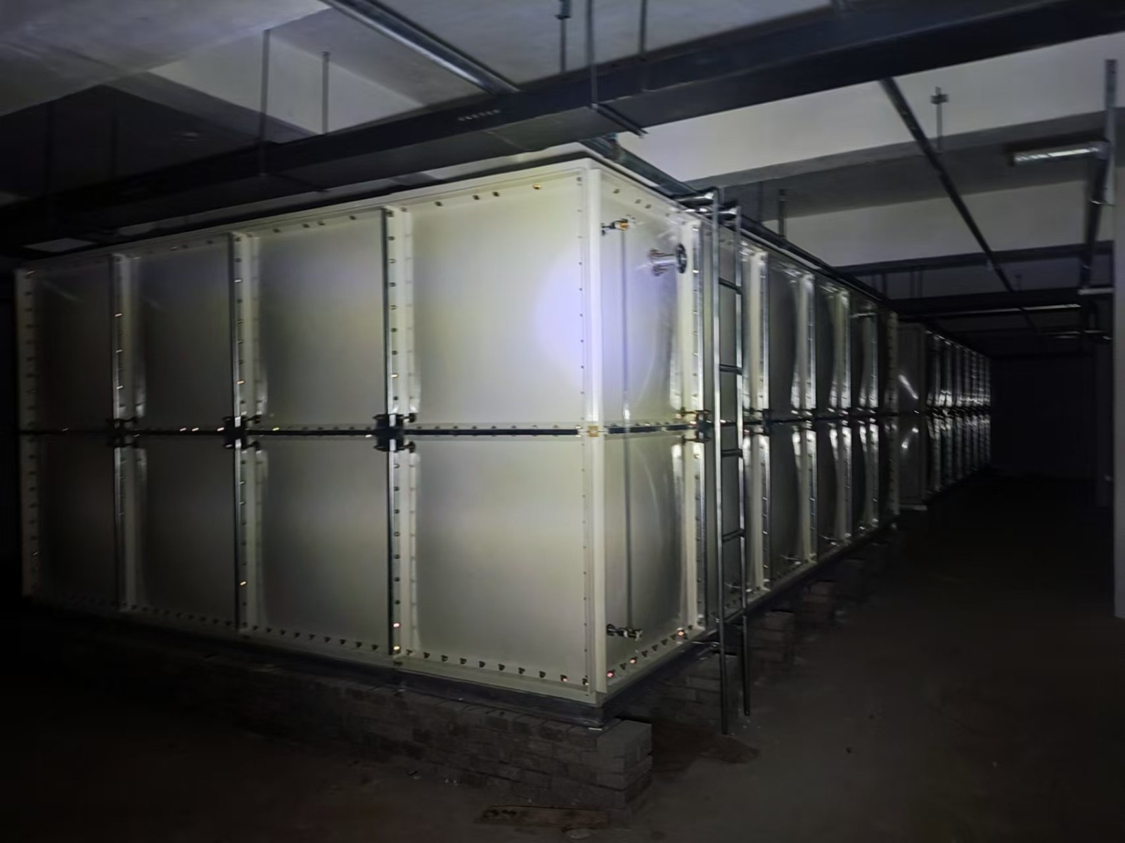 公司我司承接的河北省任丘市京淶一品地下室人防水箱項(xiàng)目,已安裝試水完畢。玻璃鋼水箱廣泛適用于工礦、企事業(yè)單位、住宅、賓館、飯店等建筑,作為生活飲用水、中水處理、消防用水及其他用水儲(chǔ)水設(shè)施。